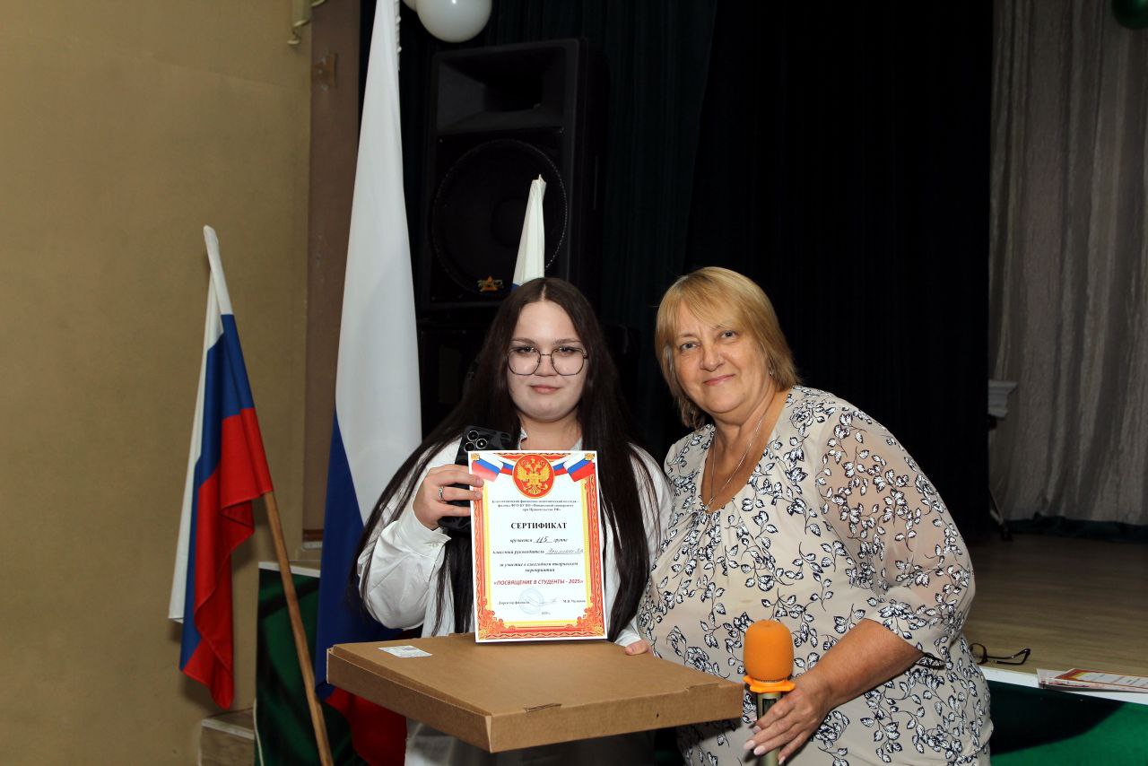 Поздравили первокурсников с праздником заместители директора Е.М. Шматковская и О.В. Ладоня.